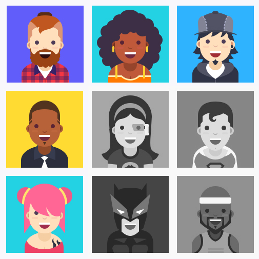 Unzählige Kombinationsmöglichkeiten – Mixe Frisuren, Kleidung und Farben.